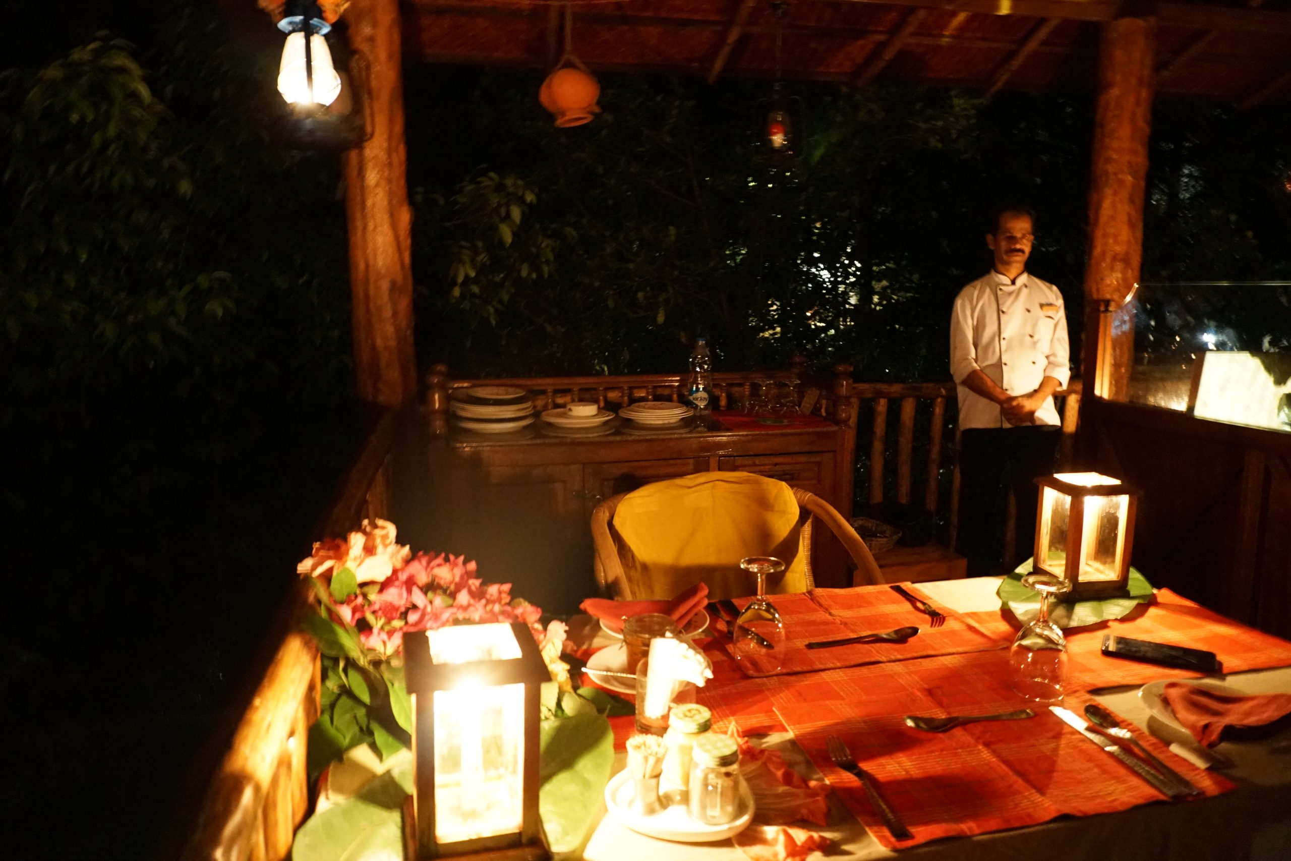 In my last night, Mr. Jyothish (GM of Nature Resorts) was courteous enough to take time out and arrange for a special tree top dining exclusively for me. It was one of a kind experience for me in order to have a private dining along with a personal chef who designed a traditional Kurumba style set menu for me . Sitting with a backdrop of enchanting mountains and with only sound of waterfalls gushing by, the entire dining experience was so surreal to say the least.